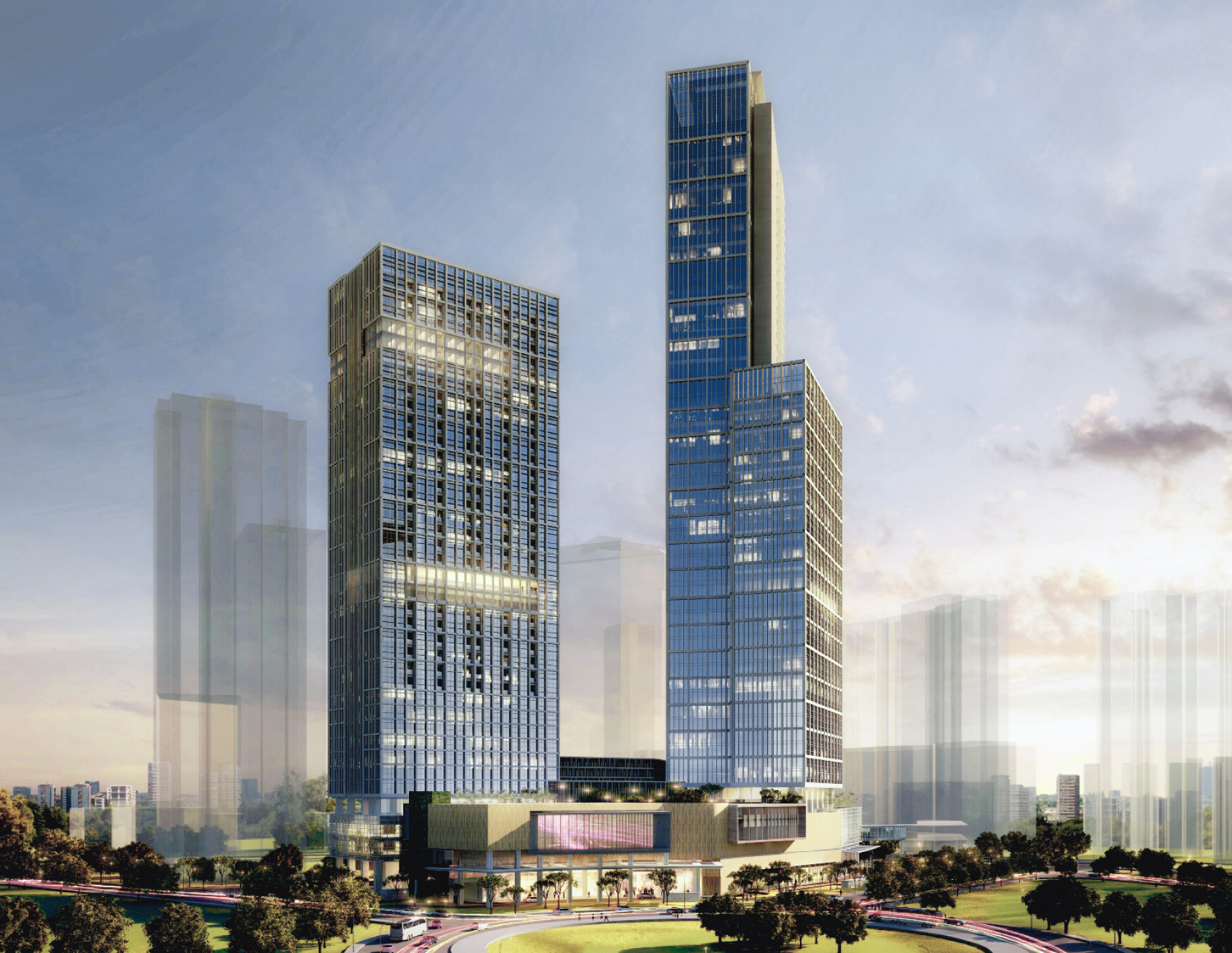 Green areas have been thoughtfully integrated into various areas of the building, enhancing the quality of life for its users. From the welcoming drop-off lobbies at each tower to interaction areas and even the parking zones, these green spaces provide a refreshing oasis in the midst of urban living. Moreover, the inclusion of greenery within the office spaces promotes a healthier and more productive work environment, fostering a sense of well-being and connectivity with nature.