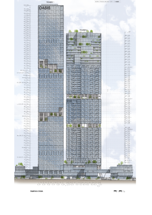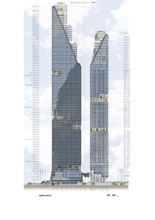 Two Sudirman is located along the prominent Jalan Jendral Sudirman in the heart of Jakarta’s CBD, the Golden Triangle. This two-tower mixed-use building integrates offices, retail, and residential spaces to meet the needs of all users. Two Sudirman was designed to develop into a future health oasis and cultural landmark in the middle of a bustling urban area. The aim is to reduce land density while optimizing visibility in the surrounding area.