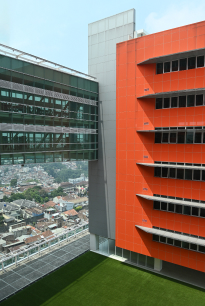 Anggara Architeam has adeptly addressed this challenge in their design. They’ve designed a campus building that combines enclosed spaces, resembling a sculptural mass, with interconnected regions, such as the sky bridge. Situated on a limited 1.55-hectare plot of land, this design maximizes density by vertically stacking up to 14 floors in the north tower and 11 floors in the south tower, both thoughtfully connected by a bridge. This verticality optimizes space utilization while preserving the crucial duality of learning environments. Furthermore, the architects’ commitment to energy efficiency and sustainability ensures that this structure not only meets the present needs of its users but also contributes to a greener and more sustainable future. Moreover, the inclusion of an auditorium with 1,000 accessible seats demonstrates a commitment to accommodating large-scale events and gatherings, enhancing the building’s versatility and relevance in the academic community.